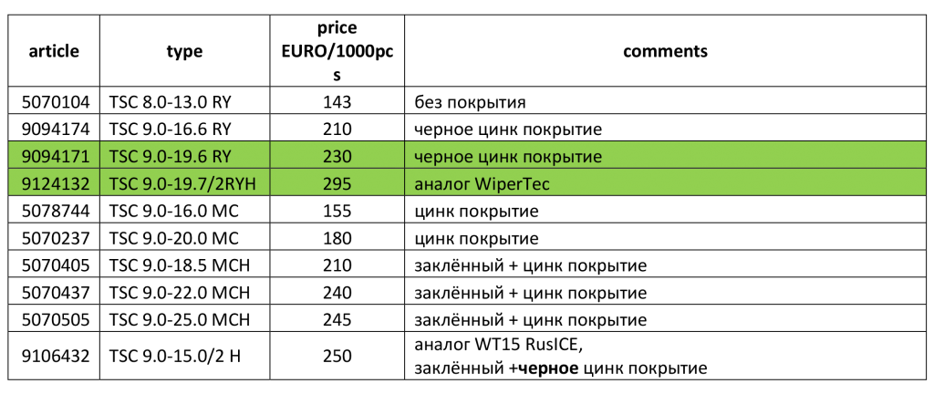 прайс на шипы указан в € за 1000 штук